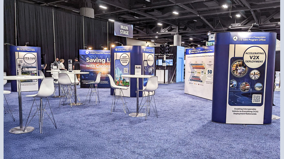Global-5 was tasked with designing a cost-efficient, reusable trade show exhibit that captures the many key messages of ITS JPO. We responded with an eye-catching modular display that can be reconfigured to fit the available space. The full exhibit made its grand debut at the 2024 ITS America Conference & Expo.